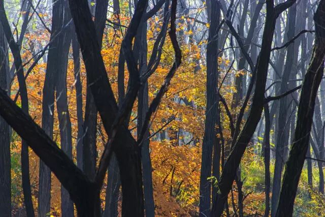 鹤伴山地形复杂多变,当秋的色彩遇上陡峭的悬崖,曲折的沟谷,便催发了充满山趣的景致。
