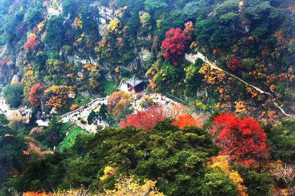 石门山的秋天,就像这里的文化底蕴一样,浑厚、丰富,愈体味愈觉迷人。传闻孔子在此撰成《易经·系辞》,李白杜甫在结伴齐时也是宴别于此。也许是人文的浸染,让这里的彩林也显得格外的充满韵味。