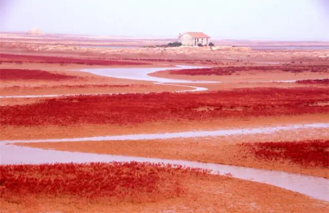 这里的红海滩不及盘锦壮观,但在与浑浑黄河水的交融中,红得厚重、苍茫,却又那样的不羁。那一簇簇火红的苗,肆意疯长,仿佛也要随黄河水一同奔腾如海。