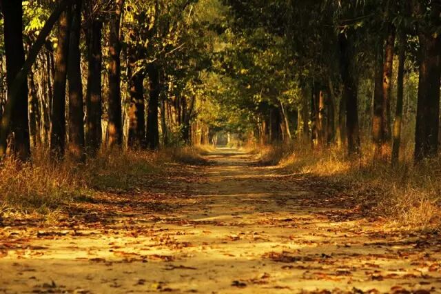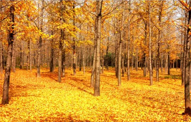 一场秋风起,一群白鸟飞,一片树林黄了。厚厚的林道中,阳光透过密叶的缝隙照在了泥土地上,落下了一地的斑斓。这里便是有着2000多年历史的古黄河遗址,几百年乃至年的古树林在深秋诉说着历史的风霜。