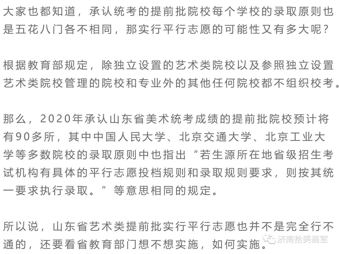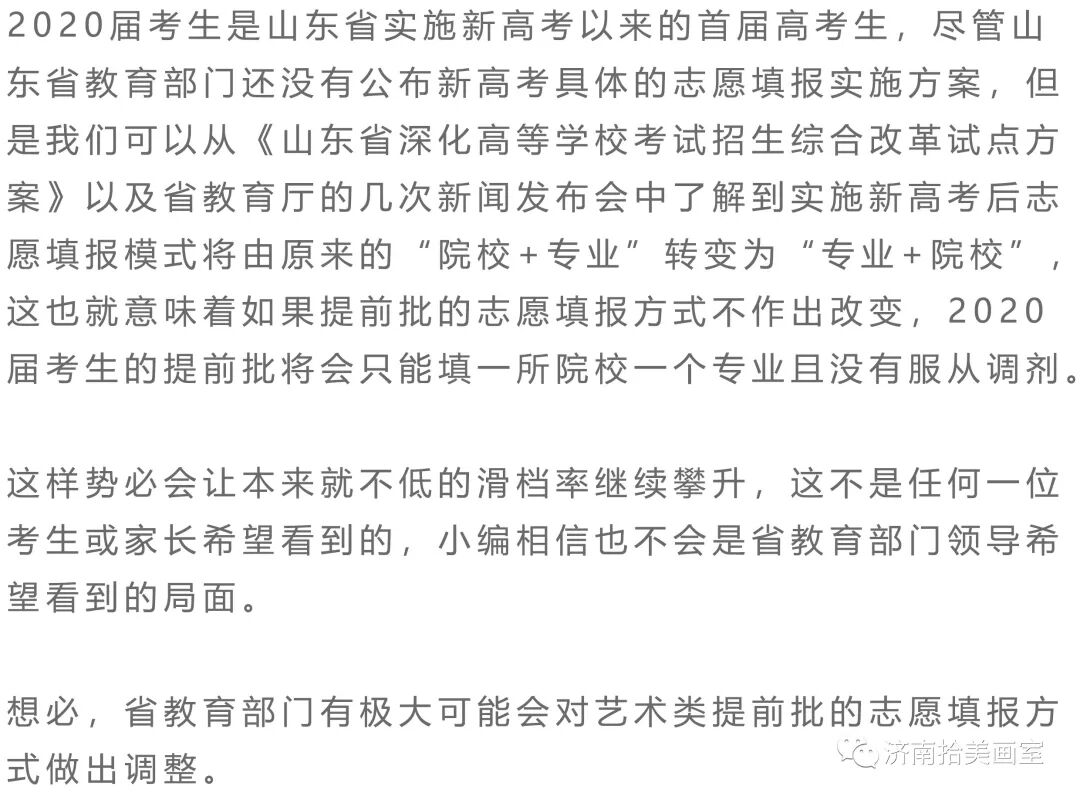 2020年山东省艺术类提前批将实行平行志愿?