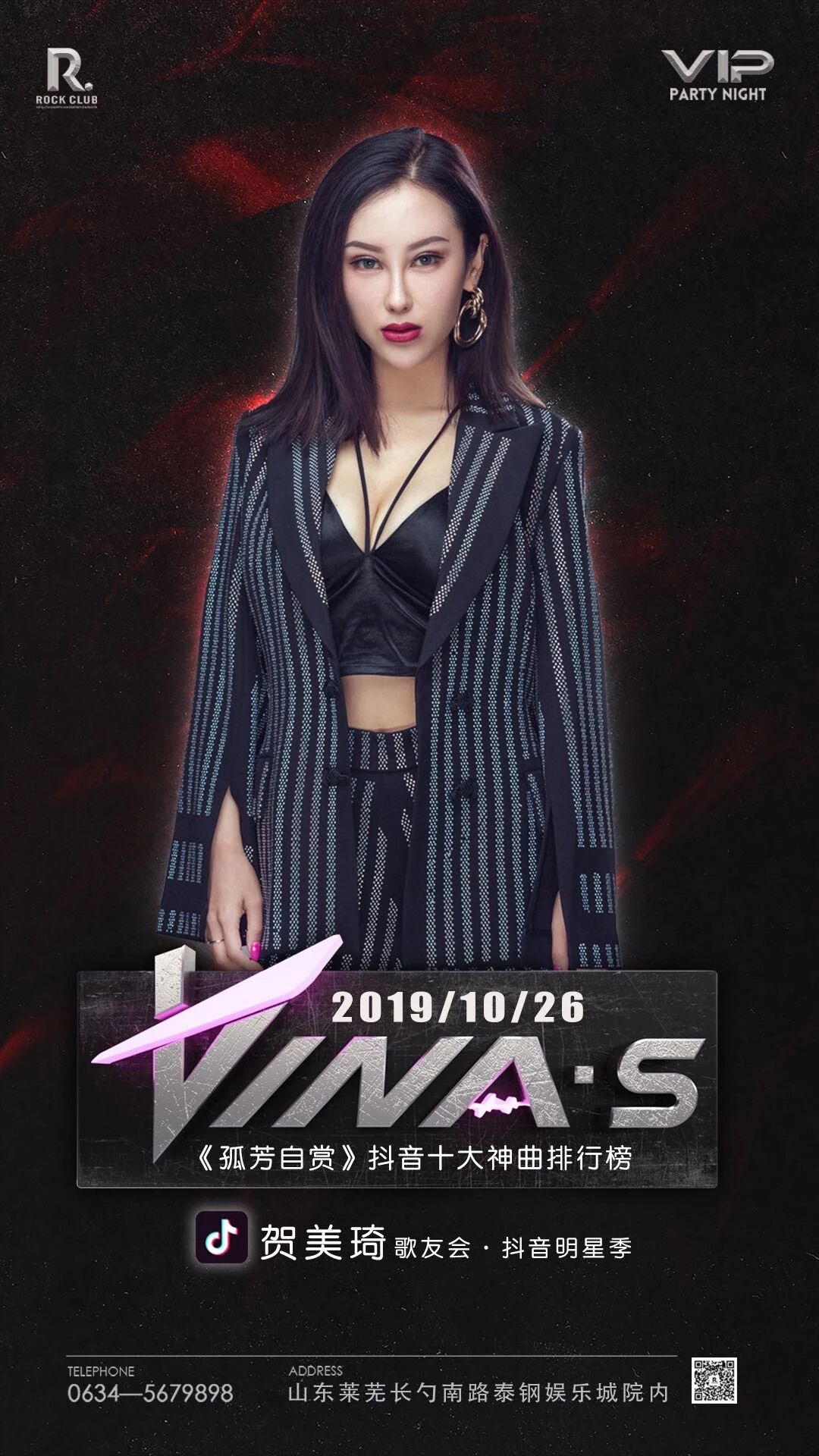 # 山东莱芜 | ROCK CLUB ## 2019/10/26 嘉宾预告 # 《贺美琦歌友会》与您不见不散代表作《孤芳自赏》抖音明星季十大神曲排行榜 · 抖音网红歌手