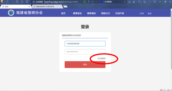 五、现在就可以登录系统,再说一遍网址:fjwq.91goodgo.com,记得账号名是手机号,密码如果忘记可以通过手机号找回,也可以麻烦您棋院的老师帮忙后台帮忙重置。