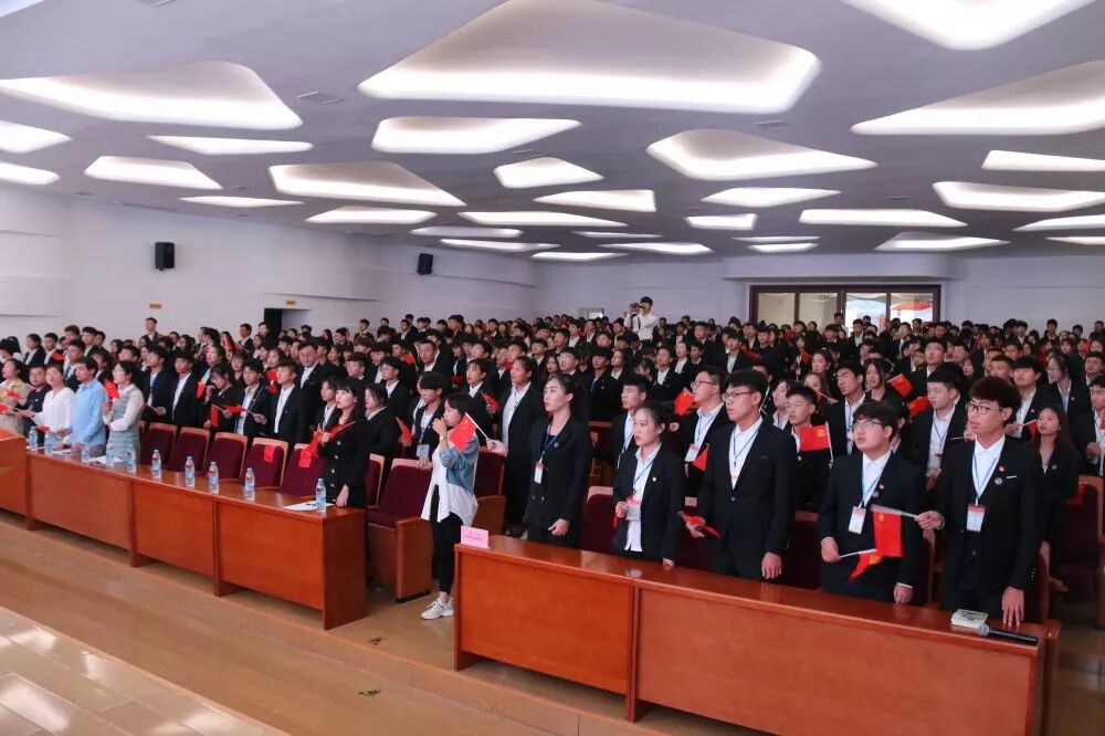 全体起立奏唱《光荣啊,中国共青团》。青春献礼七十年,不忘初心跟党走。今年对于国家来说是重要的一年、是历史性的一年,对于江西服装学院来说也是至关重要的一年,最后大家共同唱起《我和我的祖国》来为祖国献礼,也为即将到来的本科合格评估加油鼓气。