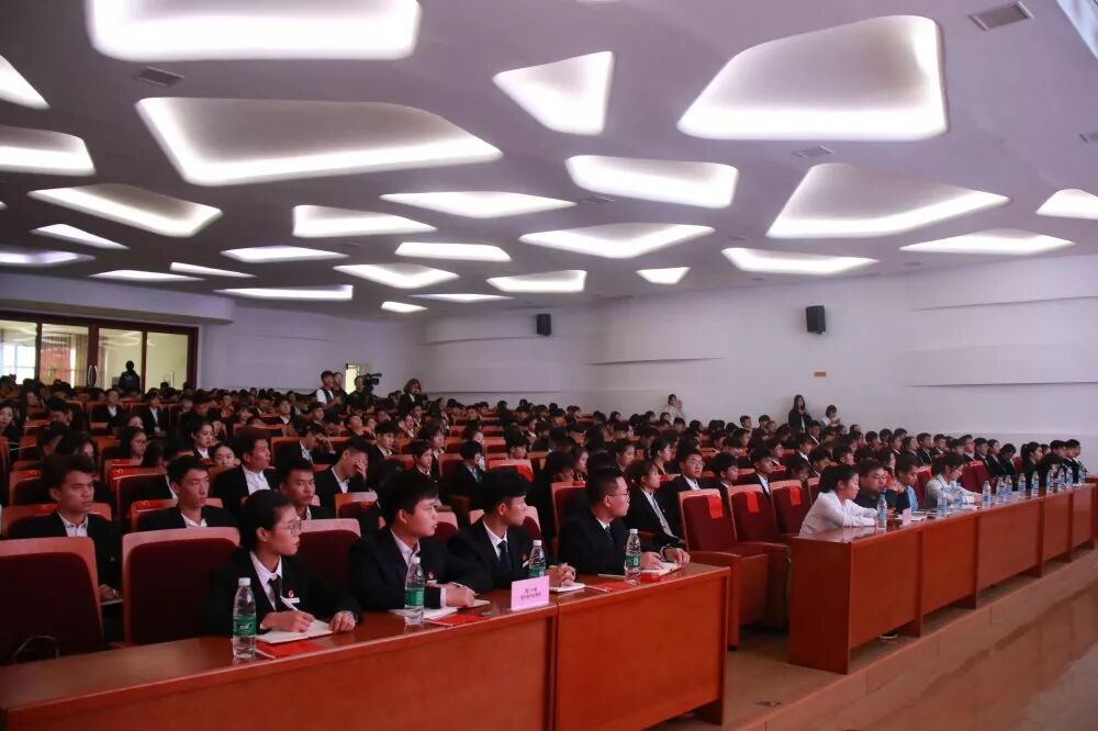 校党委副书记高建国对二十届学生会委员会工作作总结讲话并与第二十届学生委员会委员合影留念并颁发纪念品,他指出,我校各级学生组织在学校党委正确领导、团委有力指导下,坚持“自我教育、自我管理、自我服务、自我监督”四自管理教育方针,要求深入学习宣传党的十九大会议精神和习近平新时代中国特色社会主义思想,认真贯彻习近平总书记系列重要讲话精神特别是对青年学生工作的重要指示,为实现中华民族伟大复兴的中国梦贡献青春力量。