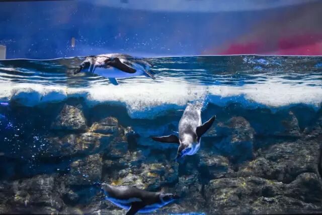 再也不用到南极看企鹅了,遵义自游港海洋世界的麦哲伦企鹅是温带地区企鹅类中最极具代表的物种,它们来自南美洲,在企鹅家族中属于中等身材,擅长游泳和潜水。