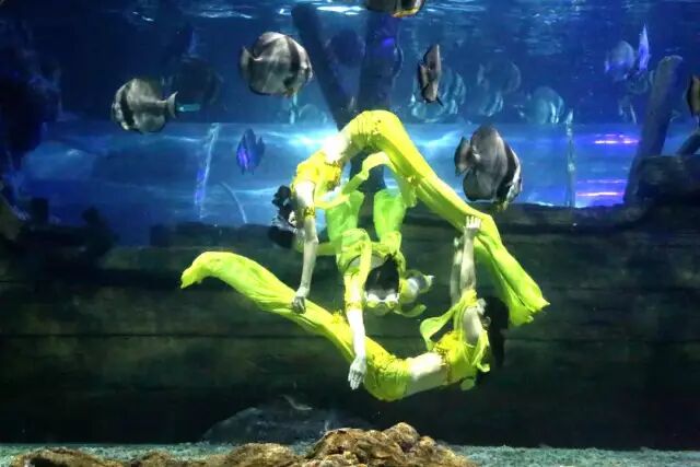 海底剧院新增神秘《水下飞天舞》表演,焕然一新的演艺,水中的她们宛如敦煌壁画飞出的仙女,美艳不可方物,给游客和以往大不同的观赏体验。