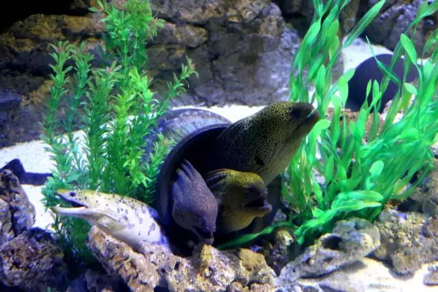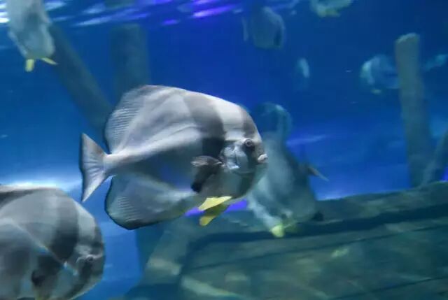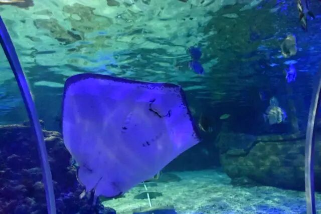 神秘的海底世界让人神往,180度超大弧形亚克力全方位景观视窗,成群结队金光灿灿的黄金鲹在我们身边嬉戏,巨大的鳐鱼从头顶掠过,魔鬼鱼扇着翅膀从眼前飞过,仿佛自己身处海洋里跟着鱼儿们畅游!抬头可以看到色彩斑斓的鱼儿欢快地在蔚蓝色的海洋中游来游去,梦幻灯光轻轻触碰似乎伸手可及,偶有大胆的鱼儿会在距你几厘米处与你双目对视。五颜六色的鱼群,看万鱼争食的壮观景象,还能聆听大海深处的动人童话。