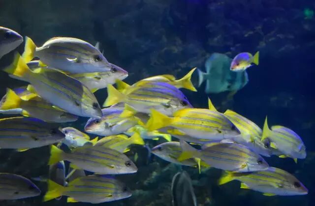 表演人员将化作海洋舞者在水中,大秀黄金舞,作为迷弟迷妹的黄金鯵将其团团围住,有节奏地变换着队形,就等你来围观。