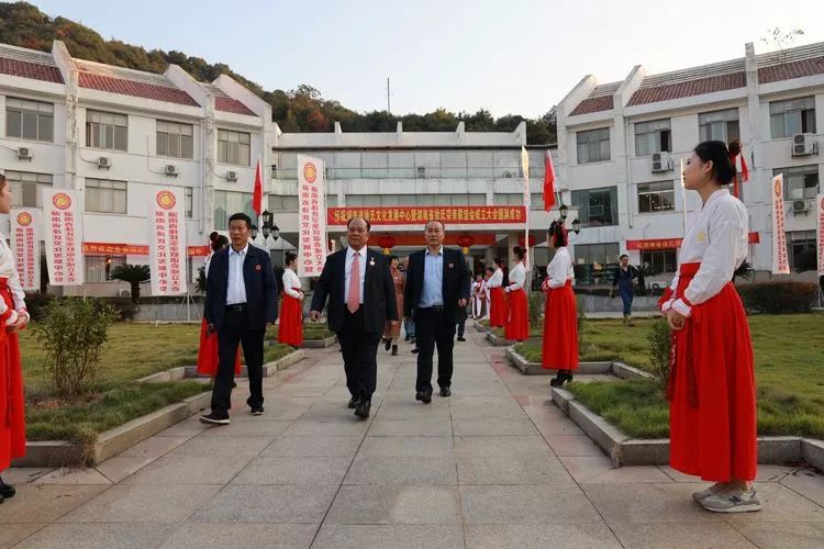 授牌、授印仪式。全球徐氏文化商业联谊总会常委徐兆佑总会长,徐显参监事长,徐桂强秘书长为徐岳湘主任授牌,并祝贺。