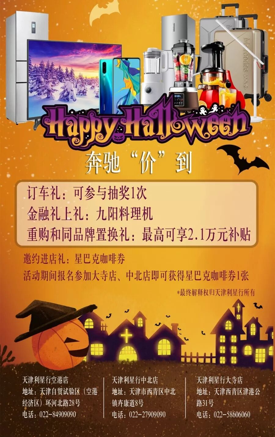 即刻加入这场万圣节狂欢盛宴,这个周末相约天津利星行中北店、大寺店、空港店,我们不见不散。