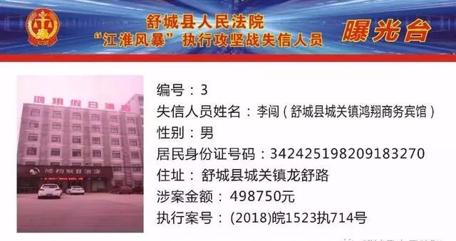 【失信曝光台】安徽省最新失信名单曝光!高清照片、住址、身份证号全都有!也有美女