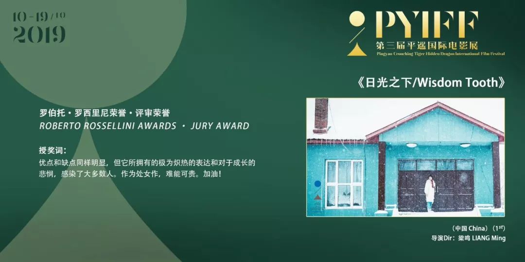 10月16日,由第三届青葱计划五强获奖导演梁鸣执导的《日光之下》在第三届平遥国际电影展荣誉之夜,获得了费穆荣誉·最佳导演以及罗伯托·罗西里尼荣誉·评审荣誉。
