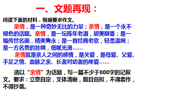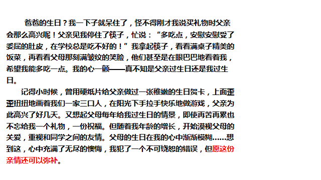 请以“亲情”为话题,写一篇不少于800字的记叙文。要求:立意自定,文体清晰,题目自拟,不得套作,不得抄袭。