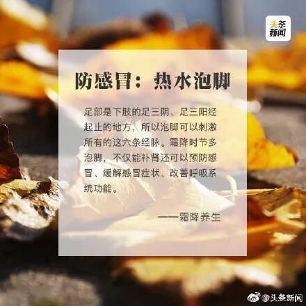 霜降节气要谨防“风寒湿痹”,中医学认为,风、寒、湿邪是导致关节疼痛的主要原因。