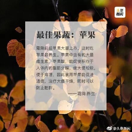 每年10月23日或24日,太阳到达黄经210°,到了秋天的最后一个节气——“霜降”。今年的霜降是10月24日1时20分。