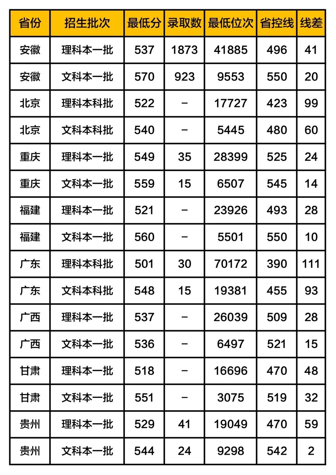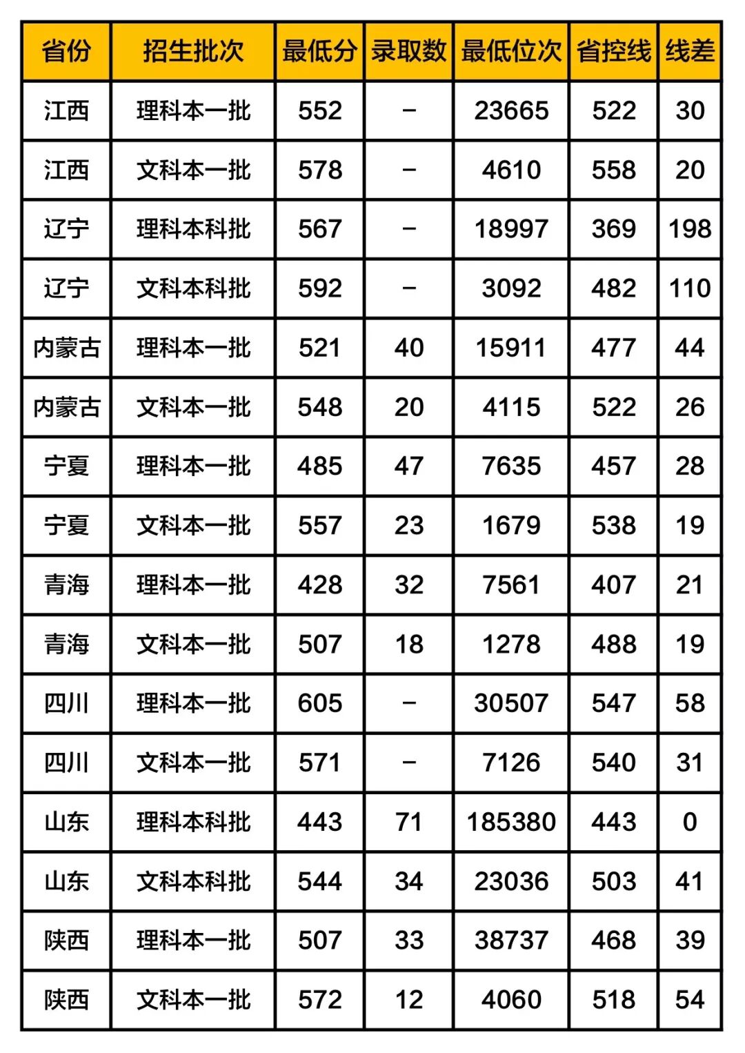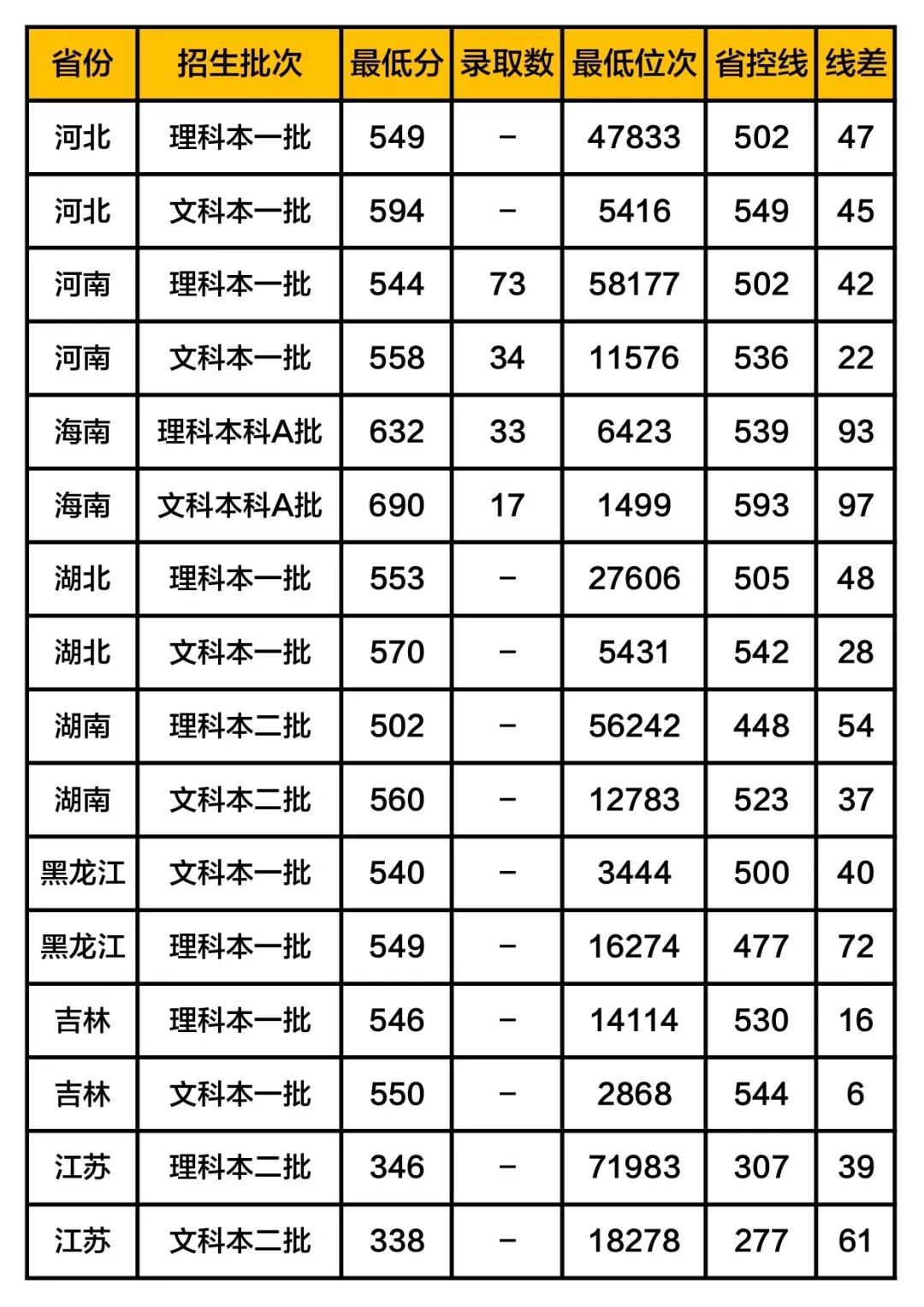 4. 线差:当年该校在本省对应批次的录取最低分与本省高考该批次分数线的差值。