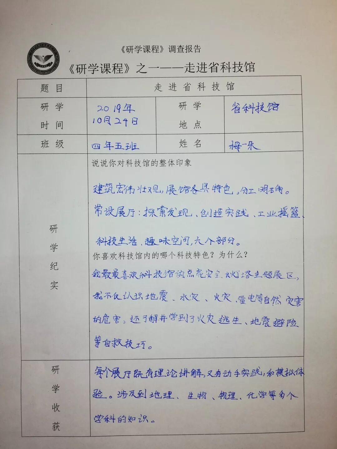 回到学校后,学生们将自己的所见所闻认真地记录在社会实践报告单上,并且进行了分享交流。