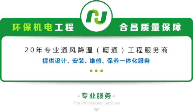广东合昌自创办以来,一直以“诚信、务实、服务、共赢”的核心价值观,服务于通风降温(暖通)行业,为企业提供设计、安装、维修、保养一体化服务,已在行业取得了一定的优良口碑,客户对我们的每一次认可都是我们前进的动力,我们一定不负所托,为客户打造精品工程回馈宝贵的信任。