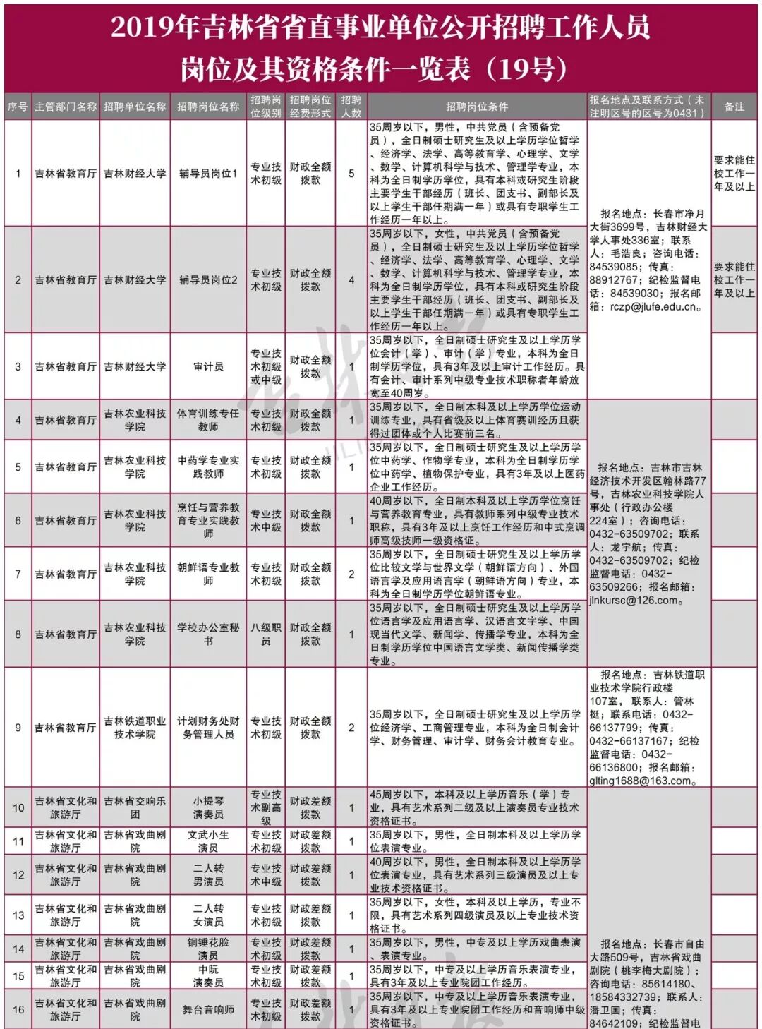 1.2019年吉林省省直事业单位公开招聘工作人员岗位及其资格条件一览表(19号)