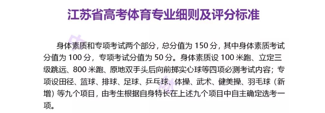 江苏省高考体育专业细则及评分标准是什么?想要报考江苏省地区的体育考生们注意了,小编今天为大家整理了关于江苏省高考体育专业细则及评分标准是什么的情况,建议大家认真阅读,提前了解考试规则和考试项目也是非常重要的,因为只有了解清楚了,才能更好的训练!祝愿各位考生在体育专业统考中平安顺利,取得好成绩!