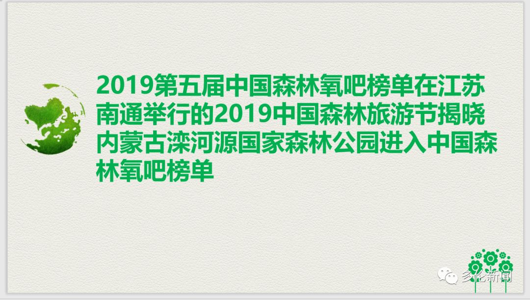 内蒙古滦河源国家森林公园荣获2019第五届“中国森林氧吧”荣誉称号