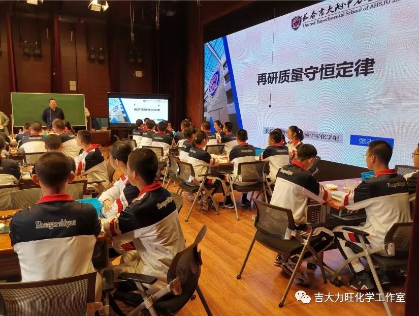 长春吉大附中力旺实验中学化学组张志冬老师在研讨会中呈现《再研质量守恒定律》省级示范公开课。