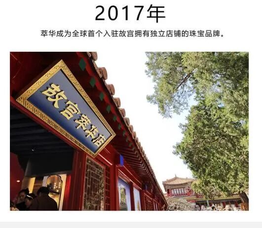 2017年,萃华金店进驻北京故宫开设品牌店,展示历史文化。萃华珠宝还频频亮相巴黎时装周,将沈阳老字号打造出的时尚带出国门,让花丝镶嵌等中国非物质文化遗产走向世界。