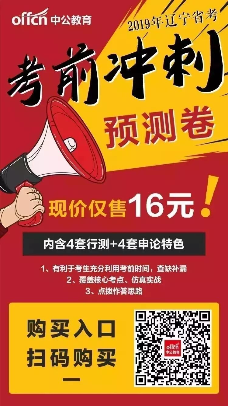 适合冲刺阶段的学习资料——2019辽宁省考21天冲刺计划,全省中公教育分部可免费领取纸质版,数量有限,先到先得,赶快识别图片二维码预约。