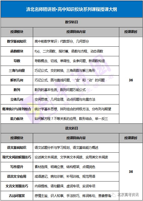 数学、语文、英语三科(每科各36课时)